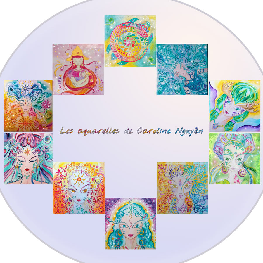 Elle vous présente ici la série de déesses et d’alliés des 22 cartes imprimées entre 2022 et 2025.