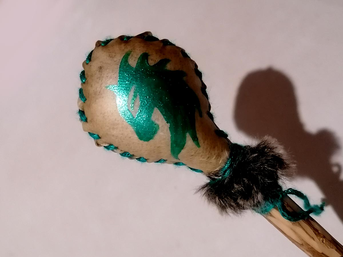 - Remplissage: haricots rouges, pois chiche, petits cailloux d’ici, grelots, coquillages du Lac de Gurson