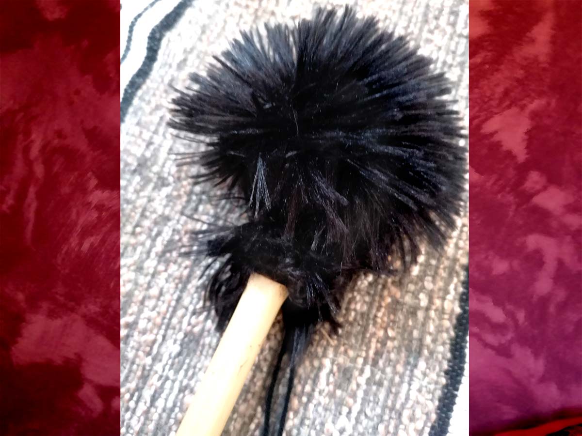 - Type: mailloche « molle » pour faire résonner les peaux de assez épaisses à épaisses